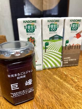 長野に家族旅行に行ってきたそうです巨峰のジャムと野菜生活の特別パッケージ。楽しみに美味しくいただきます。あと、父へのお供え物も持ってきていただいて、いつもあれこれ気にかけていただきありがとう。