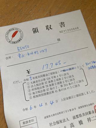 2024年04月10日 募金百貨店 BENTO. • 東近江市 BENTO.は八日市の街角にある小さなお弁当屋さんです。 詳細 日記 お気に入りに追加 当店は募金百貨店の加盟店をさせていただいております日替わりBENTO.のお買い上げごとに募金させていただいているですが、先週、令和5年度にお預かりさせていただいた分を滋賀県共同募金会に納めさせていただきました集められたお金は見守り活動支援募金となり、地域の福祉に役立てられるそうですお弁当を食べると、地域がちょっと良くなるってことですな必要とされる方に役立てていただけますように。 この記事を報告する 不適切な内容や規約違反を発見した場合はご報告ください