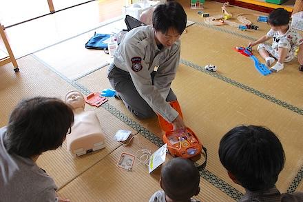 誤飲、熱性痙攣、アレルギー対応、心肺蘇生法やAEDの使い方、その他いろいろとお話して頂きました