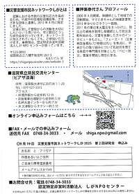 オンライン申し込みフォーム、FAX、メールのいずれかで、しがNPOセンターまでお申し込みください。
