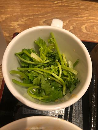 パクチーが別についてて、のせて食べるというもの。