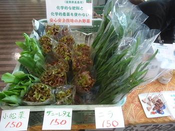 無農薬、無化学肥料のお野菜は小松菜、サニーレタス、ニラです。