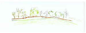 外部からの建物へのアプローチはここから始まり、庭園を見ながら