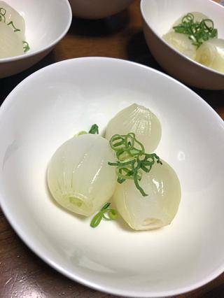 小さかった玉ねぎたちを丸のまま、レンジでチンしただけのもの。
