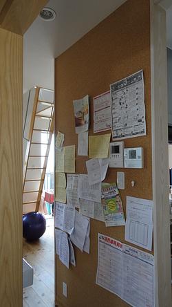 写真の左側の壁、コルクシートの掲示板。というより大きな掲示壁(写真の角度がよくないですが)