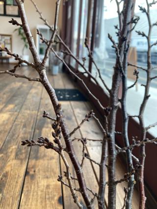 つぼみがふっくらしています。室内なので早く咲きそう?一部ですが桜の花が見られるといいな