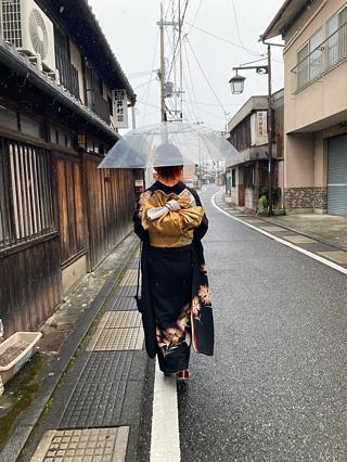 着付けとヘアメイクをしていただき、お店を出たら雪!!