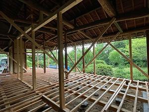 補強と新しい間仕切りのために柱や横架材を組んでゆきます。