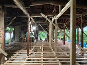 ようやく解体工事も終わり、耐震補強や床工事に入ってゆきます。