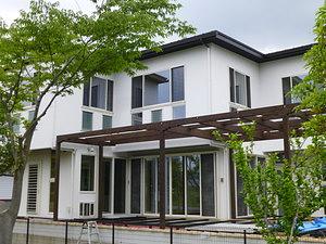 デッキ屋根施工中