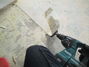 ハンマードリルで平型のアタッチメントではがしていきます。