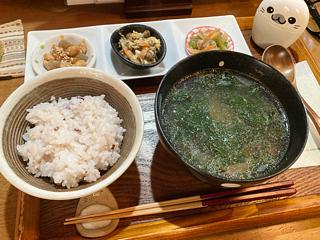 ちょこちょこの副菜とモロヘイヤのみそスープがホッとする