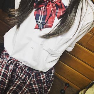 よく見るとスカートとリボンのチェックが違うのね。でも上手にそれらしいの見つけてくるよね学校の制服でいいやん、って言ったら、ダサくてダメらしいですわ
