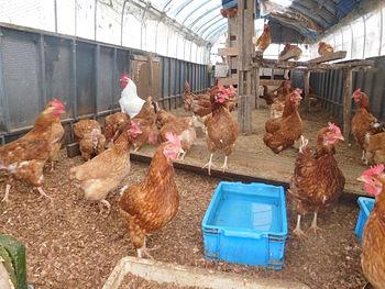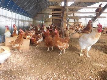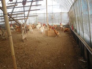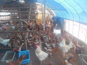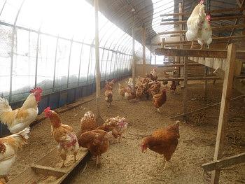 20代のゴトウもみじです。外は寒いですが、鶏小屋の床は発酵で発熱しているので小屋の中は15℃くらいあります。カメラのレンズが曇ってしまいましたね。