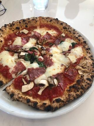 薄生地のナポリピザ。サラメを頼んだのですが、美味しかった~カリッととトロンとが良き加減で、一枚食べ終わるころにも美味しいピザ。変わった表現ですが、私にとっては大事なところなのですよ。