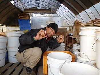 朝の卵拾いです。いつものようにいつもの朝を迎えられることがうれしいです。
