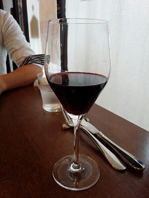 赤のスパークリングのグラスでの提供って・・・。