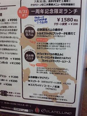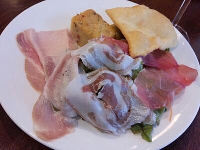 うちとお抱え運転手は、その自家製生ハムと手打ち生パスタが食べられる1周年記念のランチメニューがありましたので、それを頼みました。