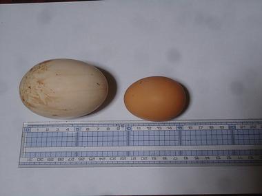 卵は、卵巣から黄身が成熟して排卵されてから、卵管のなかを移動しながらゆっくり卵白が作られ、殻ができて産卵されます。殻がしっかりできている卵を中に含む巨大卵は、また卵管のなかを通ったのかな?不思議です。