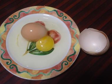 割ってみると、中からもう一つ卵が出てきました。殻は固くて、普通の卵です。