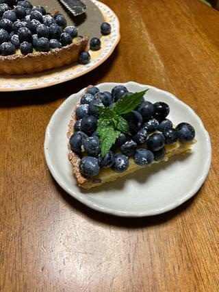 クリームの上に、生のブルーベリーをのせているだけなので、カットするとあちこちに散乱・・・