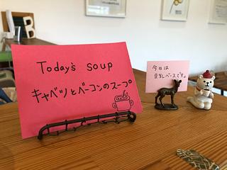 今朝から、Facebookではお知らせしてたのですが、今日のBENTO.のスープは、いつものキャベツとベーコンのスープを豆乳ベースに変えてみました。
