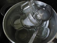 熱いうちに瓶に詰め、ふたをして、ひっくり返して置き、さめてから上に向けます。