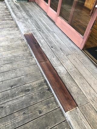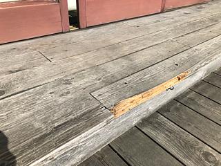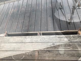 さて、台風とは関係ないのですが、BENTO.の表のデッキ部分が夏ごろから割れたままになっていたのです。。。