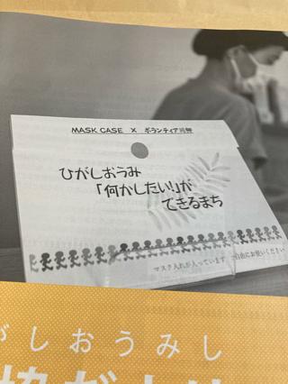 BENTO.でも夏頃にお配りしていた、社協さんからのボランティア川柳の書いた、マスクケース付きチラシをBENTO.のカウンターで撮ってもらいました