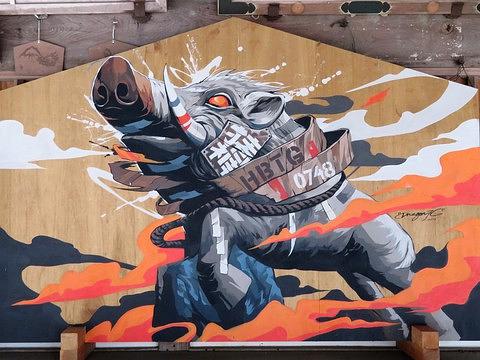 6世紀からの長い歴史のある神社で、ご神体はイノシシで絵馬も