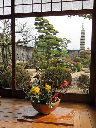 小原流の生け花が多く飾ってあり、心が和みました。 客室にも案内され、庭も素晴らしいものがありました。