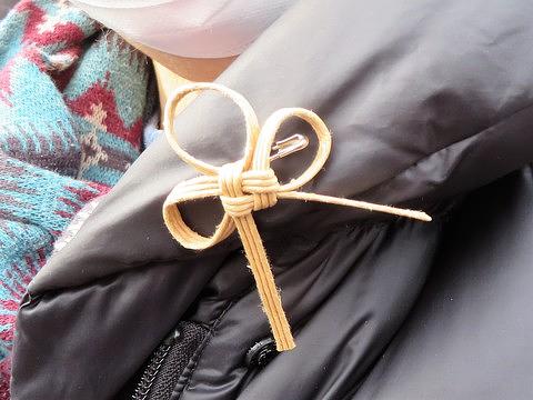 集合後、予定の説明を受け、3班に分かれました。 各班のメンバーがすぐわかるように色の違うピンを目立つところにつけました。