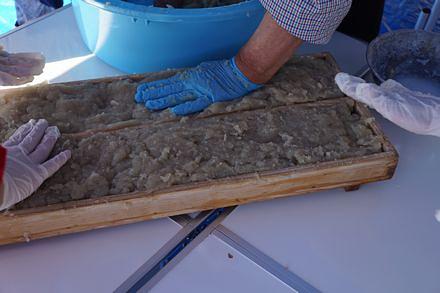 石灰とお湯を入れてまぜぜまぜ、こねこね