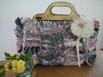 そのときにshiroiro-ieで「信楽くるみ作業所+信楽青年寮展」がおこなわれていたのですが、その方達が作られた作品の中にめちゃめちゃ可愛いさをり織りのバッグ~♪
