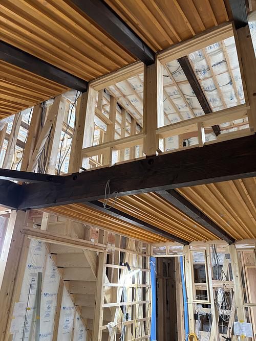 2025年07月27日 天井デザイン 梁と吹抜け shingo • 大津市 滋賀県の大津市、湖西地区を拠点に、滋賀県、京都府を中心に 古民家リノベーション、住宅建築、店舗設計建築、リフォーム、家具、什器製作など手がける一級建築士事務所。 詳細 無垢材 新築 メタセコイヤ並木 吹き抜けLDK 天井デザイン 自然素材 西川真悟建築設計 お気に入りに追加 天井を考えるいまでは普通にクロス貼りの天井が主流ですが今回はオーナー様の要望もあり板張りプラス格子の天井をデザイン施工。 この記事を報告する 不適切な内容や規約違反を発見した場合はご報告ください