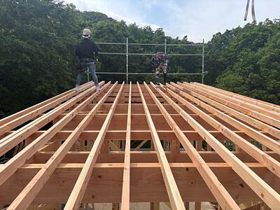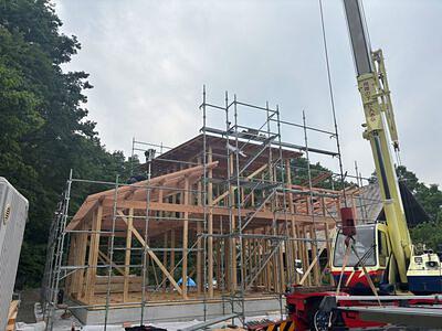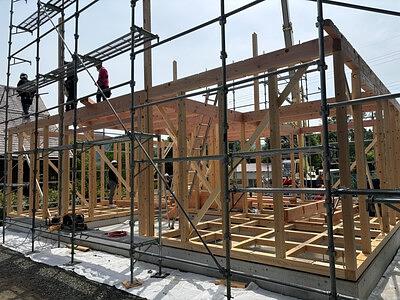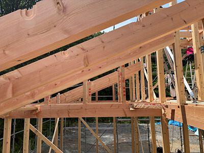 2025年06月06日 上棟 shingo • 大津市 滋賀県の大津市、湖西地区を拠点に、滋賀県、京都府を中心に 古民家リノベーション、住宅建築、店舗設計建築、リフォーム、家具、什器製作など手がける一級建築士事務所。 詳細 構造 マキノ メタセコイア並木 上棟 湖西に住む 無垢材 お気に入りに追加 5月の吉日天候に恵まれた上棟でした。リビングは登り梁で空間を高くします。マキノは多雪区域となりますので垂木も背を90としてます。受ける梁も全体に大きくしています。この日は気温もそう上がらずに良い日に建て方ができました。 この記事を報告する 不適切な内容や規約違反を発見した場合はご報告ください