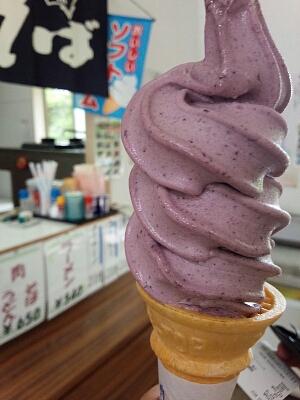 機械にパウチされた液体状のものを投入して作る一般的なフレーバーものでして、ご当地のブルーベリーソフトではないような気がします・・・。
