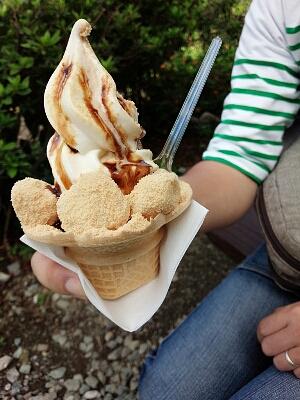 ソフトクリームに信玄餅添えて、黒蜜かけたお味です(*´з`)