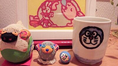 その日の晩、職場の旅行から帰ってきた旦那にえもん師匠の絵付け体験の話をすると、