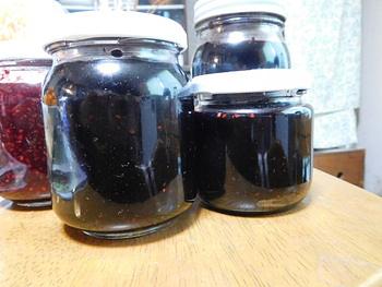奥の赤いジャムはラズベリーのジャムです。冷凍庫に残っていたラズベリーもジャムにしました。