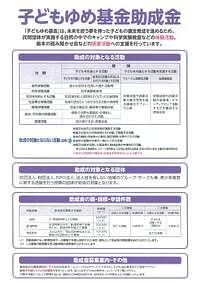 「子どもゆめ基金」は、子どもの体験・読書活動等を応援することを目的に、様々な活動に必要な経費に対する資金(助成金)を援助しています。