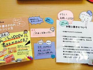 そんなことでグダグダしていたのですが、一念発起!本屋さんでPOP作りの本を買い、下手でも、下手なりにコツコツやることにしました。