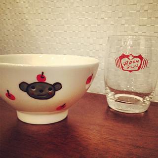 先日娘ちゃんが、ヘムスロイドで買ったお茶碗。ごはん入ったまま落としてわっちゃったので、新しい物をイラストレータータカノキョウコさんの手書きのお茶碗。可愛いでしょ~めっちゃ喜んでた