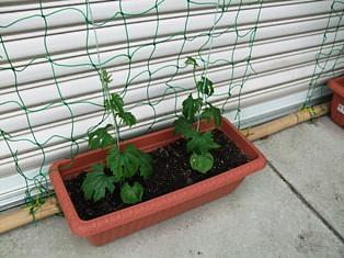 先日、緑のカーテンを植えた生地はかいておりますが、その後のゴーヤの生長を!