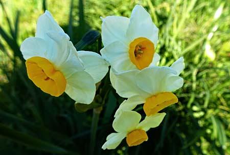 スイセンの花が咲いていいました。こんな花を見ると、春を見つけたような気持になりますよね。