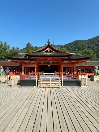 観光地として日本人、外国人がたくさん賑わう道の中を歩いて厳島神社へ向かいます。