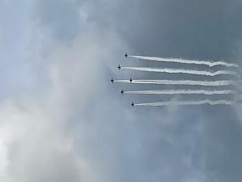 現場の真上の上空にブルーインパルスが飛行