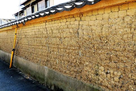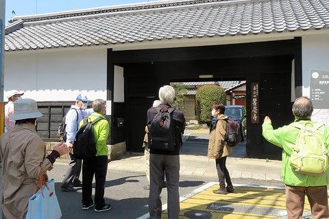 今でも残っている江戸時代の土塀が残る街並みを進み、近江輿地志略を著した寒川辰清邸跡で説明を聞きました。 写真は土塀です。
