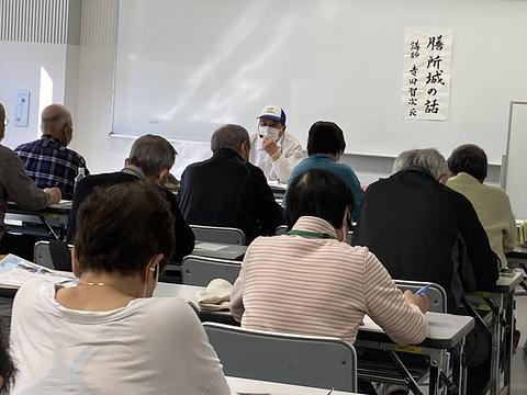 その後、大津市生涯学習センターに移動し、寺田さんから20近い質問に回答する形での講話を頂きました。