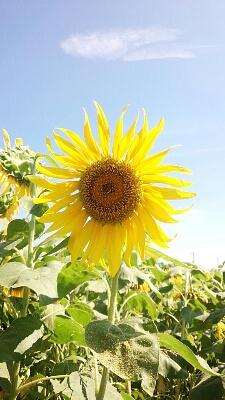 やっと元気なひまわり見つけたけど、爽やかそうな写真やけど、